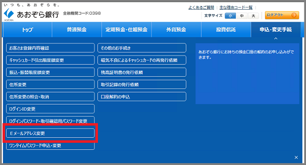 よくあるご質問 >インターネットバンキング >諸手続き >インターネットバンキングで登録しているEメールアドレスを変更したい。
